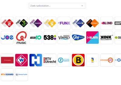 - Een zoekfunctionaliteit aanbieden: bezoekers kunnen snel zoeken naar een radiostation. Zoekresultaten (met logo en naam) verschijnen direct onder de zoekbalk, en er is een knop om het zoekveld te wissen.